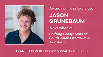 We welcome award-winning translator and University of Chicago instructor Jason Grunebaum, past winner of the Global Humanities (now HiT) Translation Prize, for our fall workshop of the Translation in Theory and Practice series, co-presented by Kaplan Institute and the Program in Comparative Literary Studies. Grunebaum will present "Shifting Ecosystems of South Asian Literature in Translation."